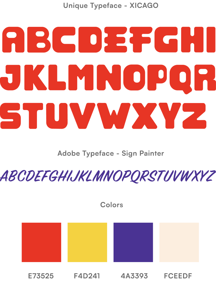 Taking in the client’s inspiration, I was able to create a unique typeface that would reflect their brand. The goal was to utilize similar colors of the infamous grocery signs here in Chicago, while adding a retro-like feel to the over style.